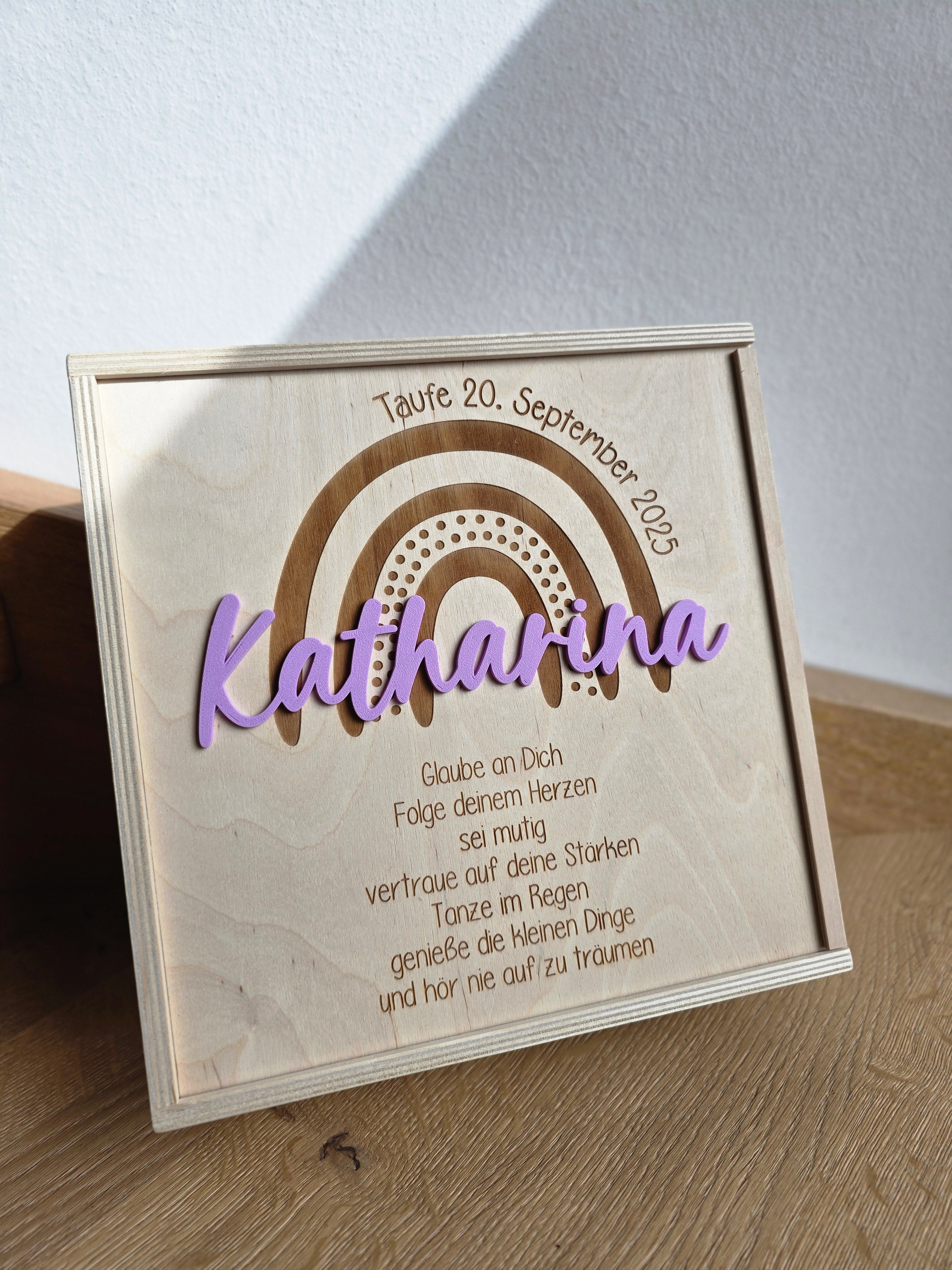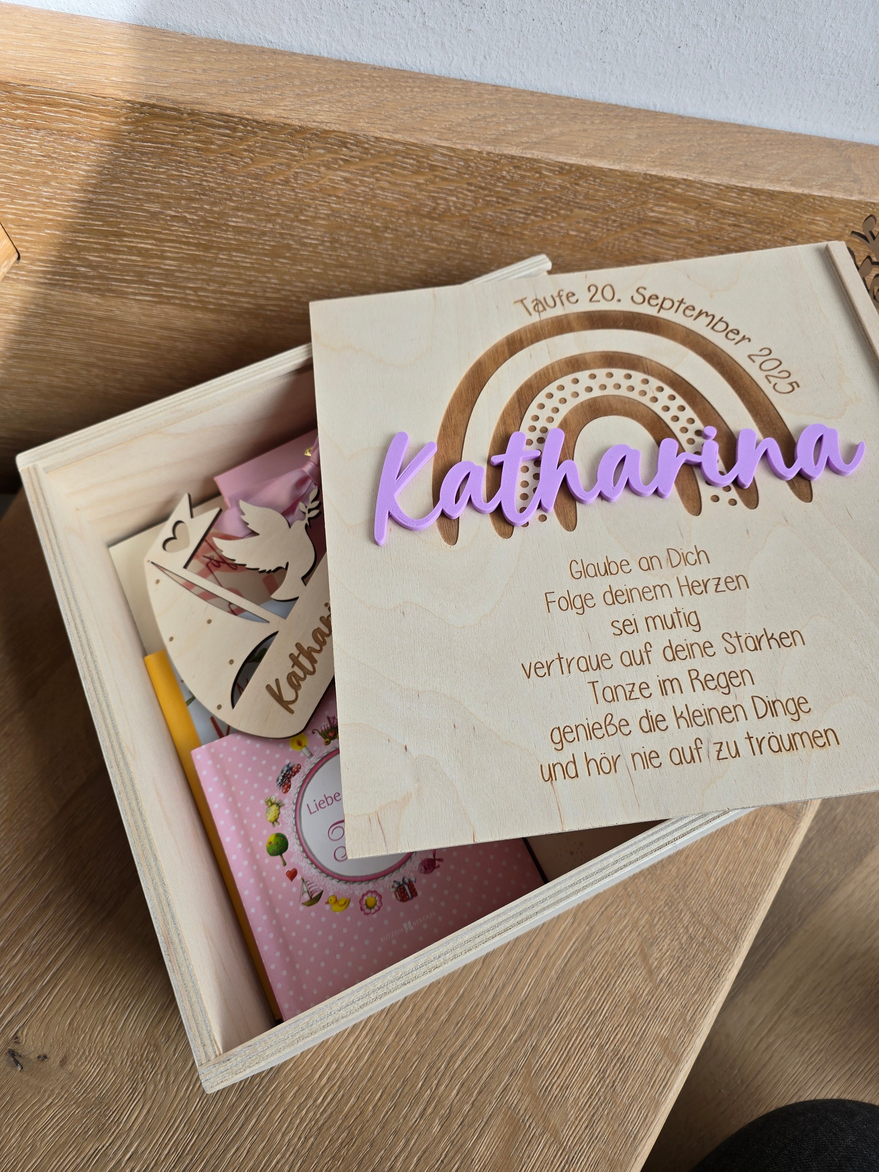 Create unique memories with a lovingly designed wooden box from Schwesterlein. The child's name is highlighted in an enchanting 3D effect on the lid.